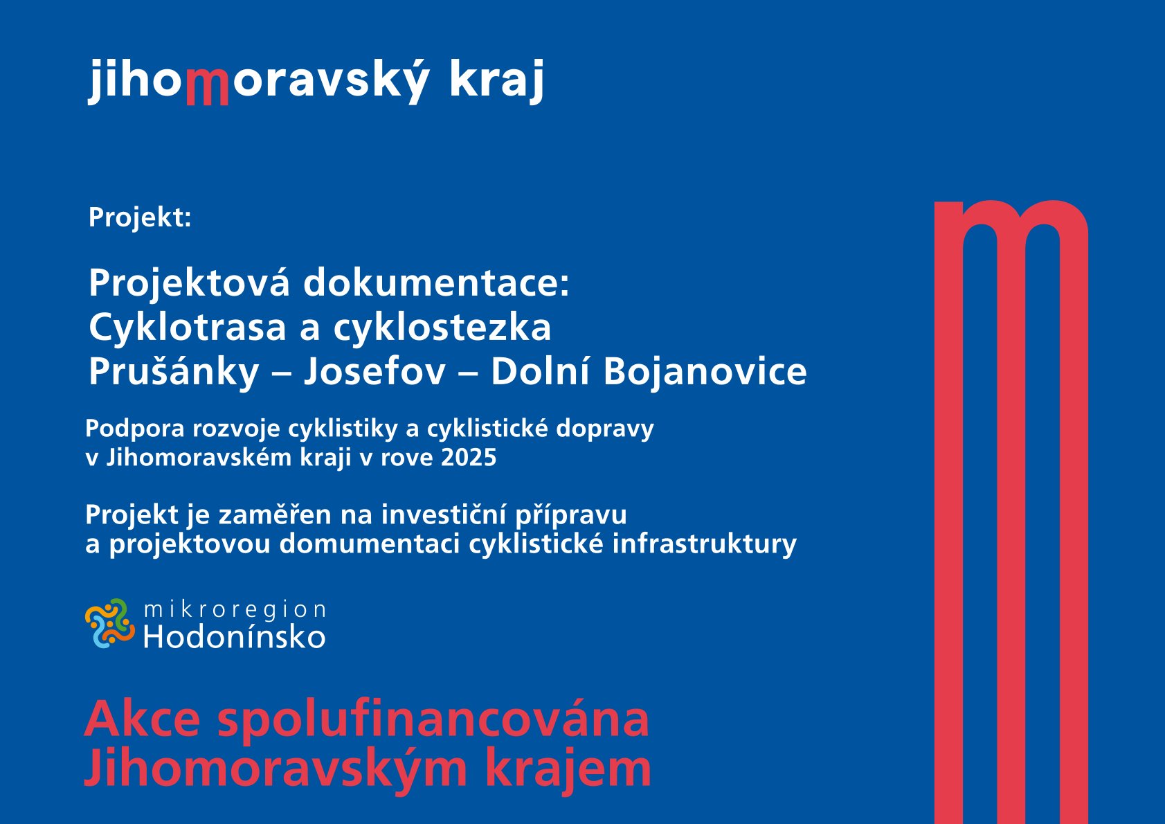 Projekt řeší přípravu projektové dokumentace pro stavební povolení na cyklostezku a cyklotrasu v kú. Prušánky, Josefov, Dolní Bojanovice částečně vedené podéle řeky Prušánky.